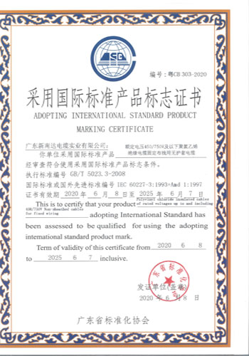 采标证书(固定布线用无护套电缆)